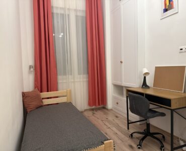 Housing The building itself has a maintained elevator, and it is equipped with 24 hours video surveillance system. The 93 square meters flat incorporates 2 x 25 m2 double rooms, and a 13 m2single room, as well an entrance, a kitchen with a food pantry,a bathroom, and a separate toilet.This flat is completely remodeled recently, all furniture and equipment are brand new. All major rooms (doubles and single) have a separate, lockable door. Both of the double rooms have two beds, cabinets and a desk.The bathroom has a shower, toilet and bidet. The furnished kitchen has a comfortable dining table, a built-in refrigerator, a microwave, as well a washing machine. There are plenty of tableware, and glasses for everyone.